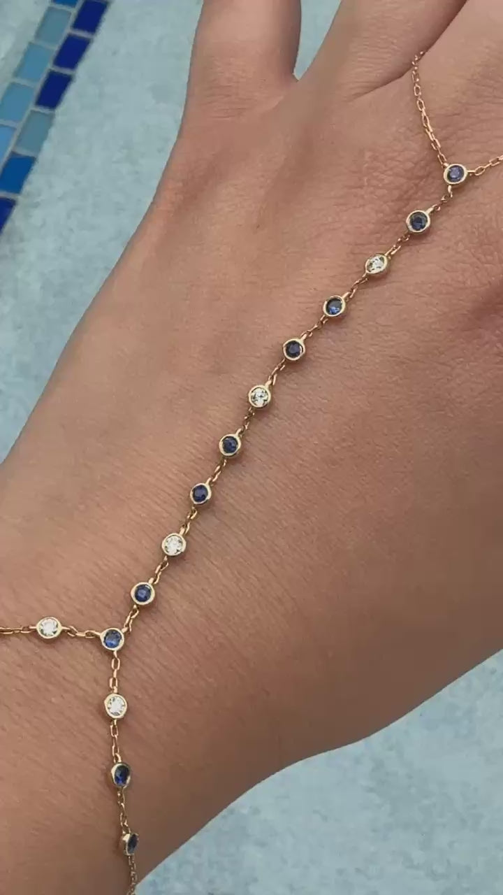 0.28 ct diamonds, 0.76 ct sapphire, 18K yellow gold, adjustable chain