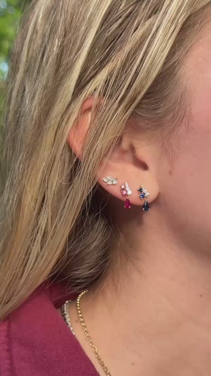 Ruby Pear Diamond Stud Earring