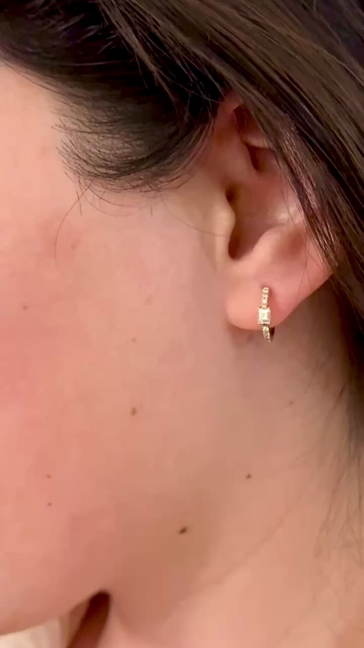 Set in 18K rose gold with 0.50 ct diamond and a center baguette diamond