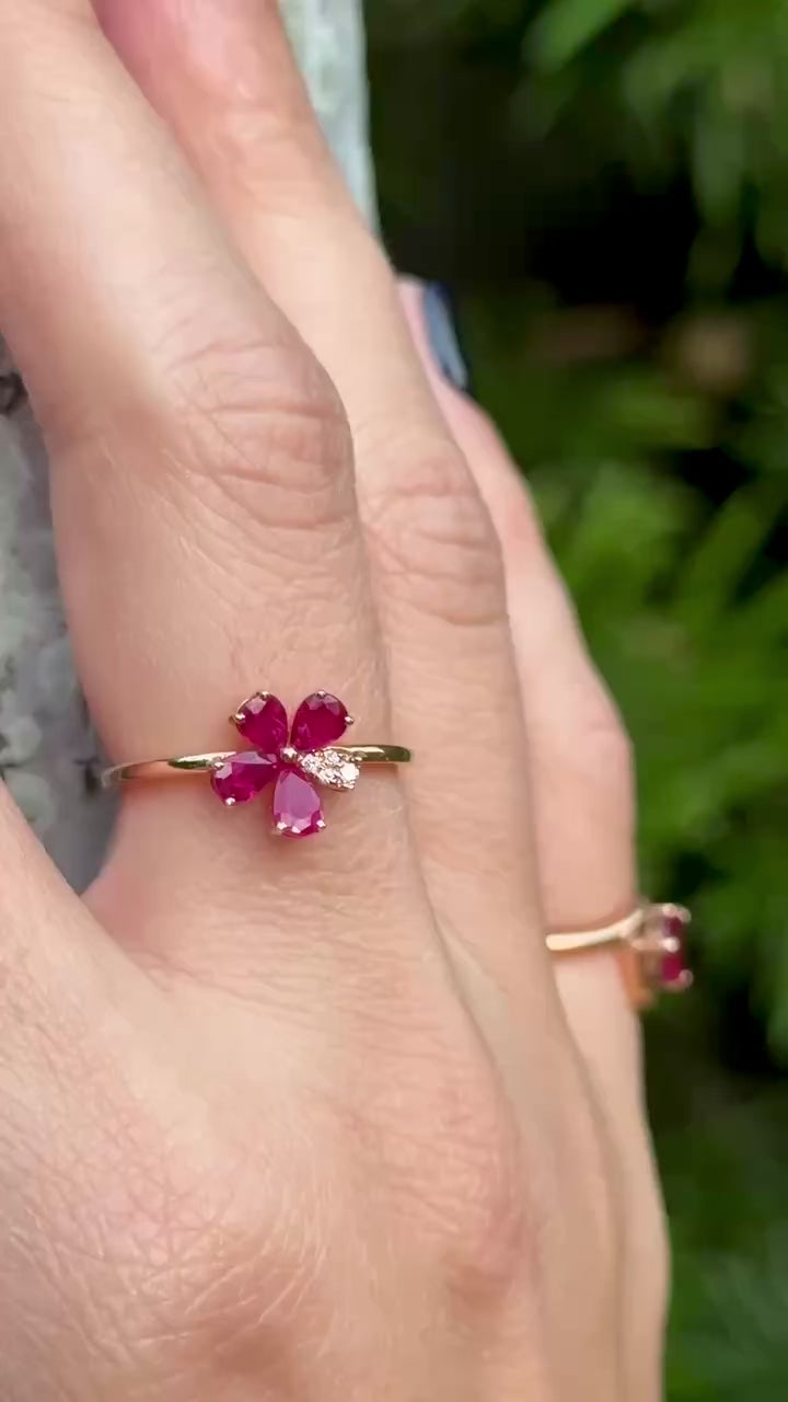 Hand-made to perfection, this ring is made in 18K gold with 0.02 ct diamond and your choice of ruby or sapphire